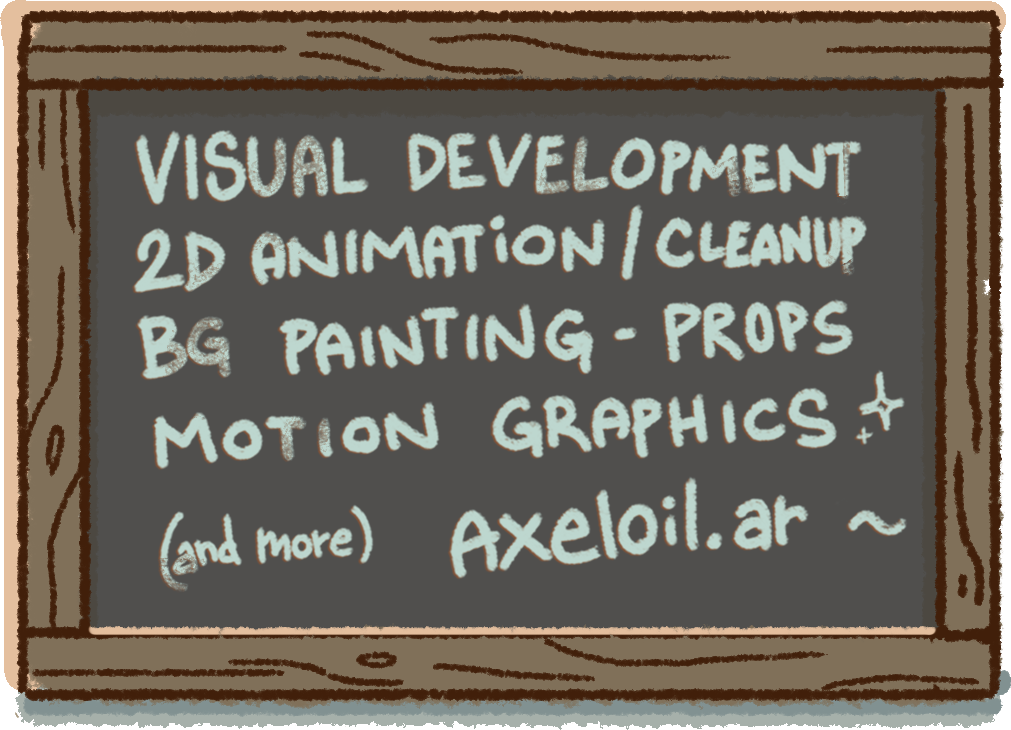 I've been working in animation since 2017, and I've had the opportunity to work on very interesting projects doing many different roles: including layout artist, motion graphics animator, 2D assistant animator, cleanup artist, background painter, character designer, visual development artist, and art director.